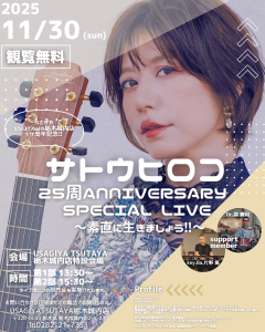 開催店舗 TSUTAYA栃木城内店 日時 2025年11月30日(日) 第1部 13:30~(約40分) 第2部 15:30~(約40分) ※各部のライブ終了後に即売会を実施いたします。 無料で観覧いただけます。たくさんのご参加お待ちしております。