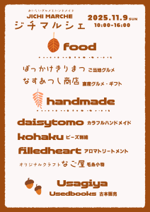 第5回ジチマルシェ開催が決定しました🍁🍂 今回も人気のフード ステキな雑貨✨️ とても楽しみです😊 ぜひ遊びに来て下さいねෆ˚*