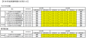 年末年始営業時間のお知らせ